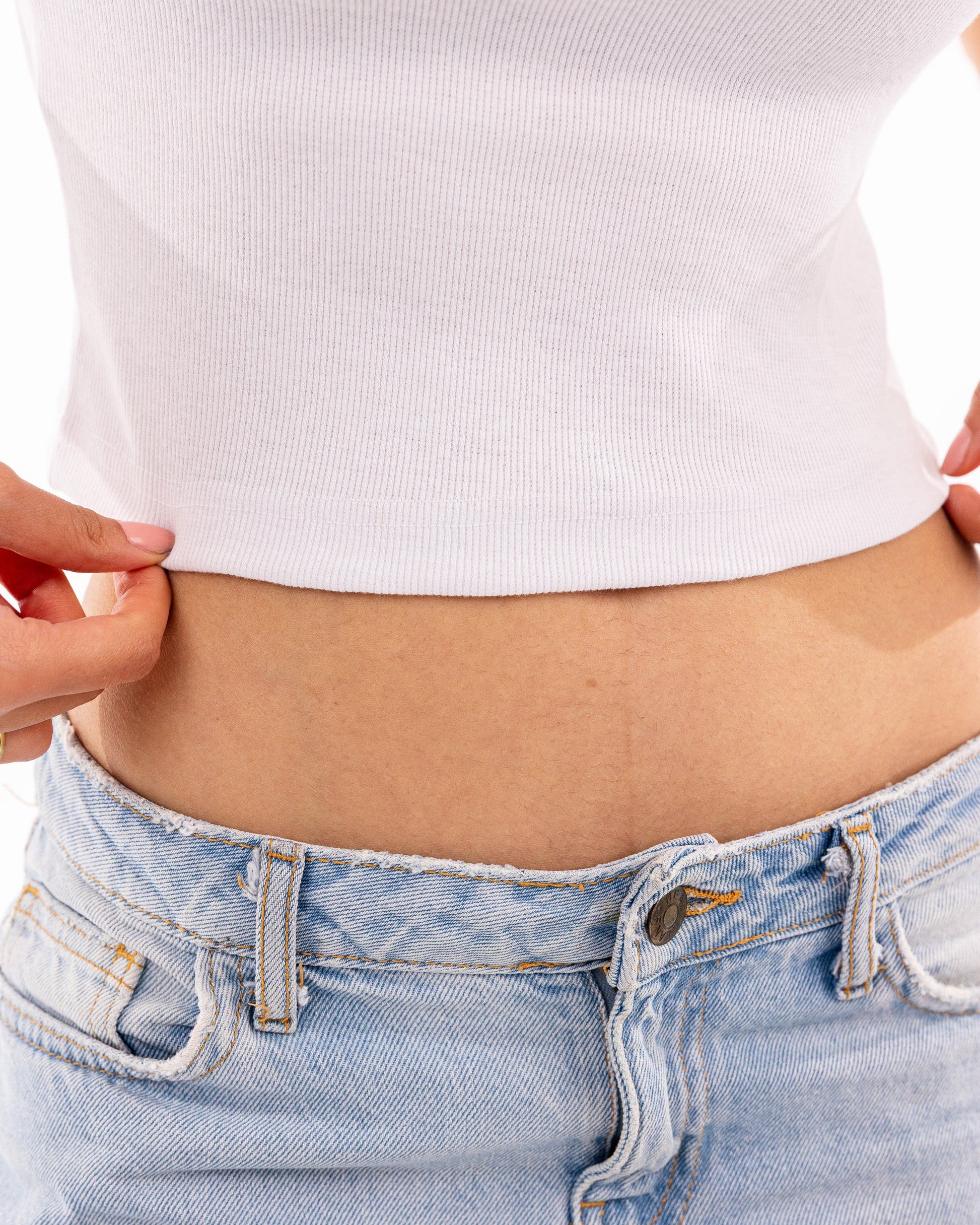This sleeveless ribbed Crop top in White offers a versatile and timeless style. Made from soft cotton, it’s perfect for layering or wearing solo for a casual yet chic look.