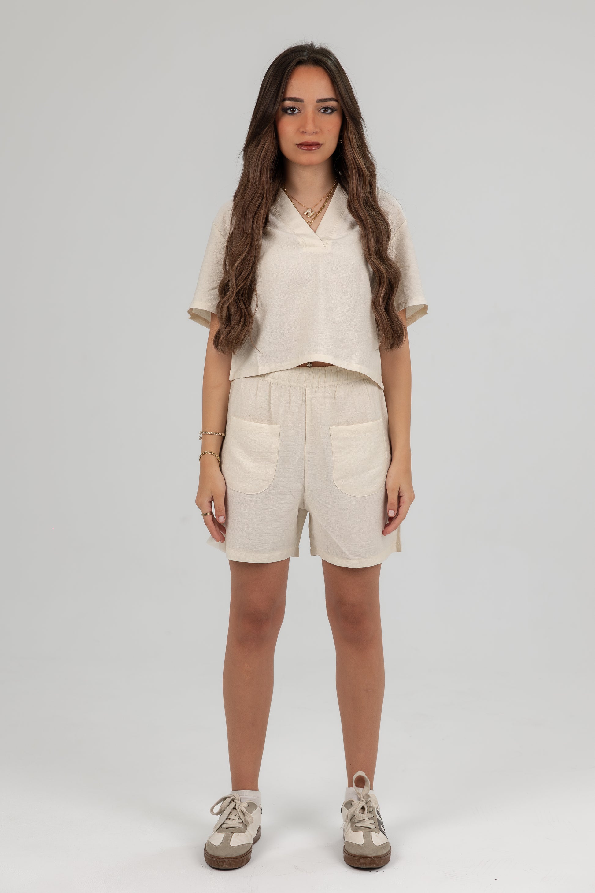 ابقي منتعشة وأنيقة هذا الصيف مع شورتات لينن النسائية الصيفية بقصة عادية. متوفرة بلون بيج متعدد الاستخدامات ومقاسات من S إلى XL، توفر هذه الشورتات قصة مريحة مثالية للأيام الدافئة. تصميمها البسيط والأنيق يجعلها إضافة أساسية لخزانة ملابسك الكاجوال.
